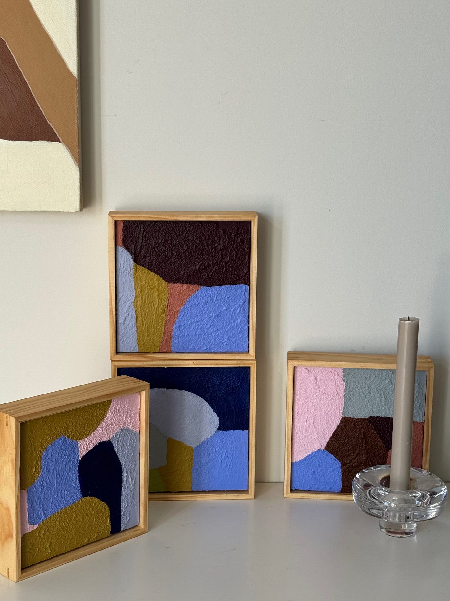 With my daughters in mind, and their gaggle of twenty-something friends who’ve bought my work or cheer me on whenever I share a work in progress, I started thinking: what if I created a series of original abstract pieces that would allow new collectors, as well as older ones interested in original art, to have affordable artwork with a real chance of staying with them as they do life?